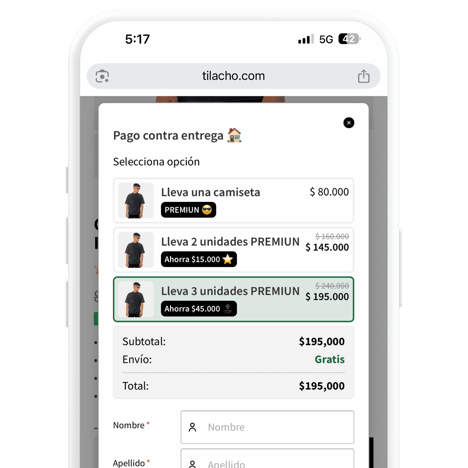 Permite a los usuarios llenar un formulario de pedido en una ventana modal emergente, lo que mejora la experiencia de productos con envío contra-entrega.